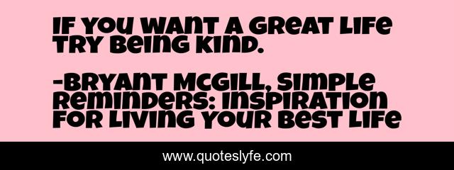 This page presents the quote "If you want a great life try being kind.". Author of this quote is Bryant McGill, Simple Reminders: Inspiration for Living Your Best Life. This quote is about being, life, kindness, greatness,.