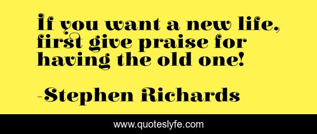 "Stephen Richards Quotes." Quoteslyfe.com, 2025. Fri. 05 Dec. 2025. <https://www.quoteslyfe.com/quote/If-you-want-a-new-life-first-159565>.