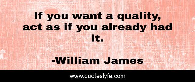 This page presents the quote "If you want a quality, act as if you already had it.". Author of this quote is William James. .