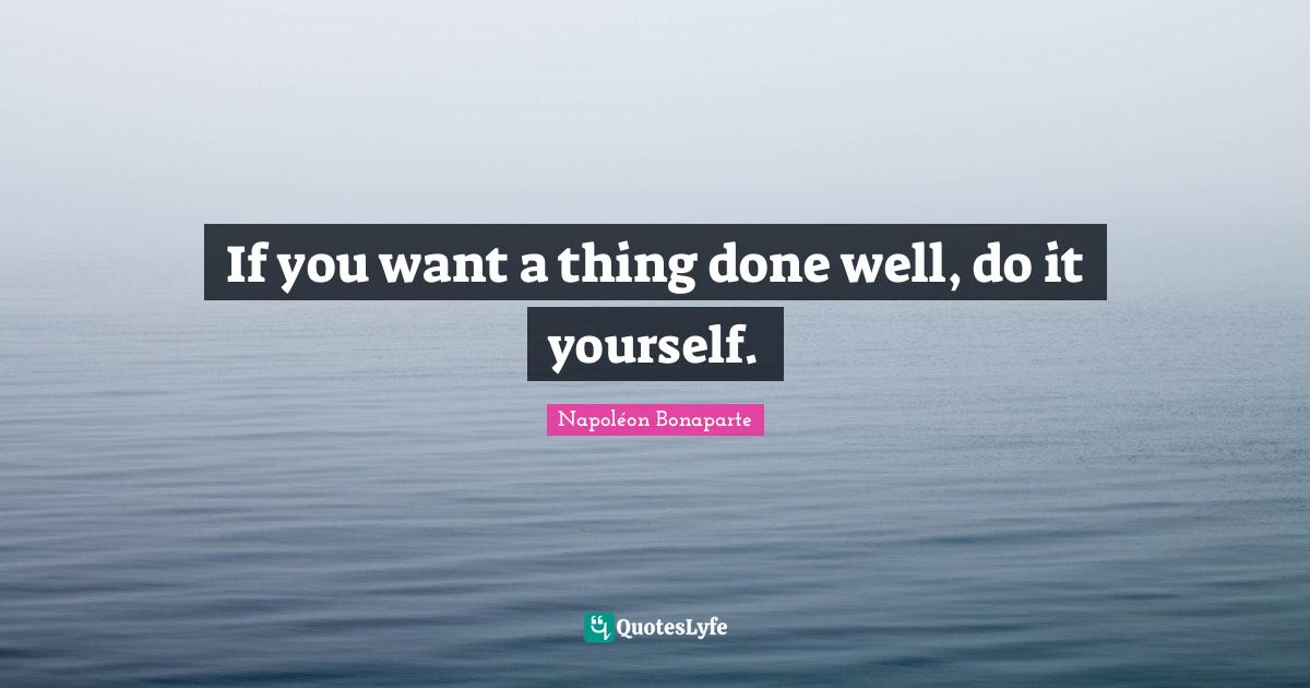 This page presents the quote "If you want a thing done well, do it yourself.". Author of this quote is Napoléon Bonaparte. This quote is about aphorism, self-reliance,.