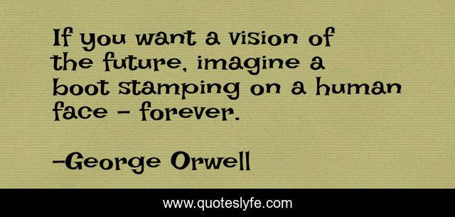 This page presents the quote "If you want a vision of the future, imagine a boot stamping on a human face - forever.". Author of this quote is George Orwell. This quote is about future, vision,.