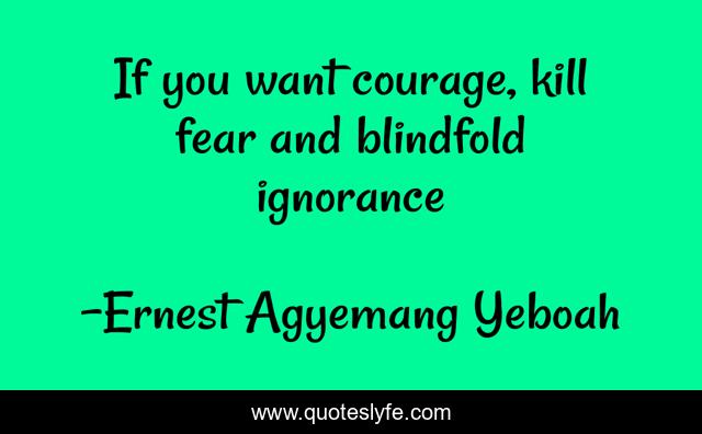 This page presents the quote "If you want courage, kill fear and blindfold ignorance". Author of this quote is Ernest Agyemang Yeboah. This quote is about stay-positive, life, daring, focused-mindset, ignorance, quotes-about-fear, behaviour, stay-strong, courage,.