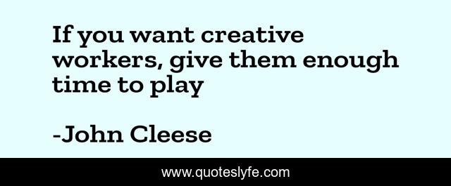 This page presents the quote "If you want creative workers, give them enough time to play". Author of this quote is John Cleese. This quote is about play, work, creativity,.