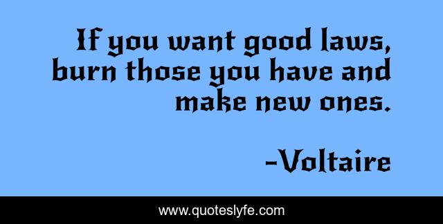 "Voltaire Quotes." Quoteslyfe.com, 2025. Mon. 08 Dec. 2025. <https://www.quoteslyfe.com/quote/If-you-want-good-laws-burn-those-199670>.