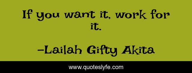 This page presents the quote "If you want it, work for it.". Author of this quote is Lailah Gifty Akita. This quote is about work, jobs, labour, achievement,.