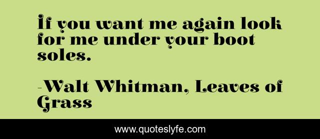 This page presents the quote "If you want me again look for me under your boot soles.". Author of this quote is Walt Whitman, Leaves of Grass. This quote is about death-and-dying, poetry,.