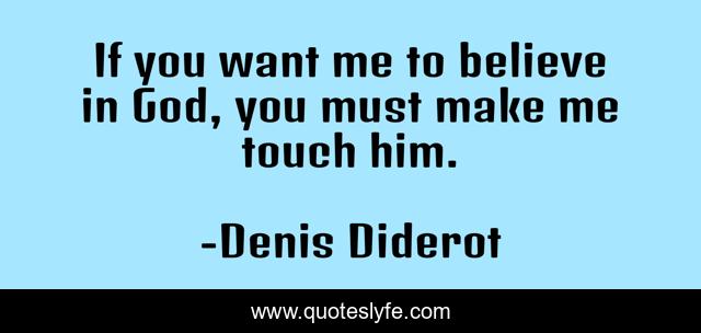 This page presents the quote "If you want me to believe in God, you must make me touch him.". Author of this quote is Denis Diderot. This quote is about senses, belief, empiricism, evidence, touch, proof,.
