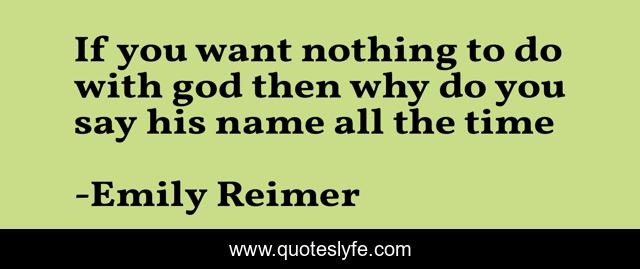 This page presents the quote "If you want nothing to do with god then why do you say his name all the time". Author of this quote is Emily Reimer. This quote is about confusion, god,.