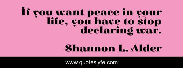 This page presents the quote "If you want peace in your life, you have to stop declaring war.". Author of this quote is Shannon L. Alder. This quote is about be-still, peace, emotions, adversity, war, conflict,.