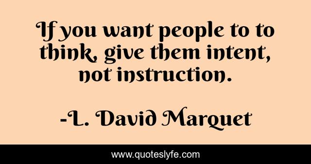 This page presents the quote "If you want people to to think, give them intent, not instruction.". Author of this quote is L. David Marquet. This quote is about thinking, instruction, intent, leadership,.