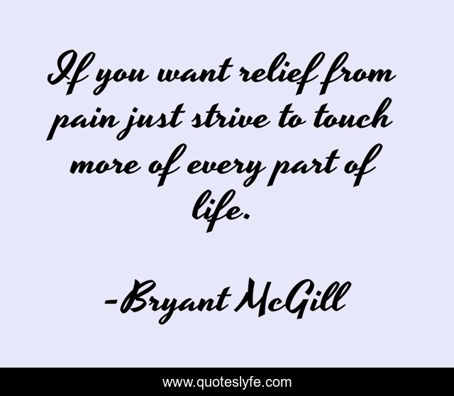 This page presents the quote "If you want relief from pain just strive to touch more of every part of life.". Author of this quote is Bryant McGill. This quote is about pain-effort, evolve, growth, relief, spirituality,.