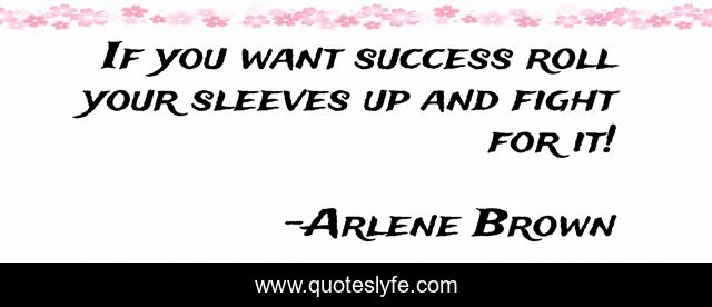 This page presents the quote "If you want success roll your sleeves up and fight for it!". Author of this quote is Arlene Brown. This quote is about motivational-inspirational, self-belief, success,.