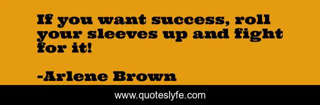This page presents the quote "If you want success, roll your sleeves up and fight for it!". Author of this quote is Arlene Brown. This quote is about success-in-life, success-self-improvement, inspirational, enthusiasm,.