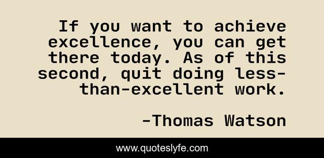 This page presents the quote "If you want to achieve excellence, you can get there today. As of this second, quit doing less-than-excellent work.". Author of this quote is Thomas Watson. This quote is about positive, motivation, excellence, confidence,.