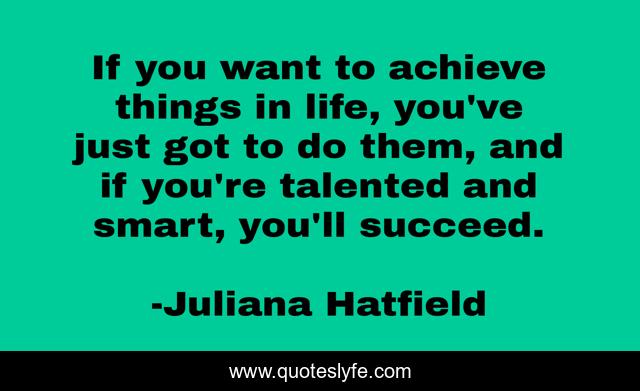 This page presents the quote "If you want to achieve things in life, you've just got to do them, and if you're talented and smart, you'll succeed.". Author of this quote is Juliana Hatfield. This quote is about life, smart,.