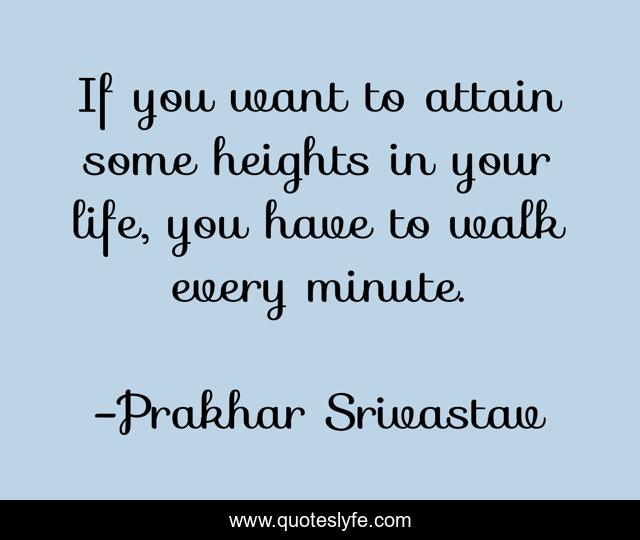 This page presents the quote "If you want to attain some heights in your life, you have to walk every minute.". Author of this quote is Prakhar Srivastav. This quote is about life, love, success, motivational-inspirational, motivational, confidence, prakhar, tamanna, optimistic,.