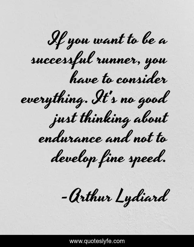 This page presents the quote "If you want to be a successful runner, you have to consider everything. It's no good just thinking about endurance and not to develop fine speed.". Author of this quote is Arthur Lydiard. This quote is about distance, training, success,.