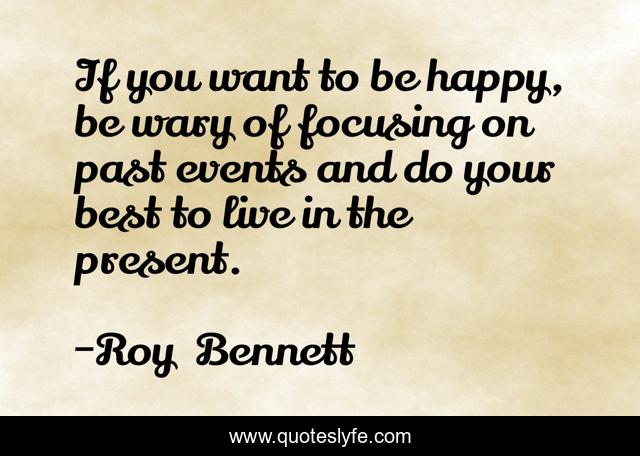This page presents the quote "If you want to be happy, be wary of focusing on past events and do your best to live in the present.". Author of this quote is Roy Bennett. This quote is about life, inspirational, enthusiasm, happy, happiness, inspiration,.