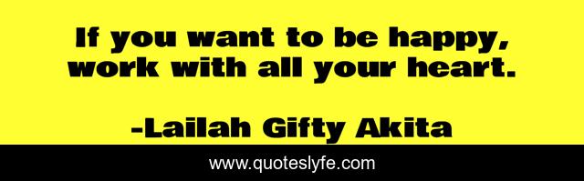 This page presents the quote "If you want to be happy, work with all your heart.". Author of this quote is Lailah Gifty Akita. This quote is about inspiring, work, happy,.