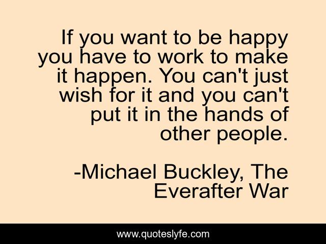 This page presents the quote "If you want to be happy you have to work to make it happen. You can't just wish for it and you can't put it in the hands of other people.". Author of this quote is Michael Buckley, The Everafter War. This quote is about happiness-choices, happy,.