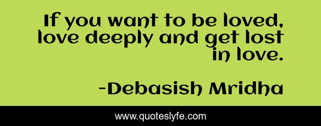 This page presents the quote "If you want to be loved, love deeply and get lost in love.". Author of this quote is Debasish Mridha. This quote is about debasish, love, mridha, if-you-want-to-be-loved, philosophy, debasish-mridha, love-deeply, get-lost-in-love, inspirational,.