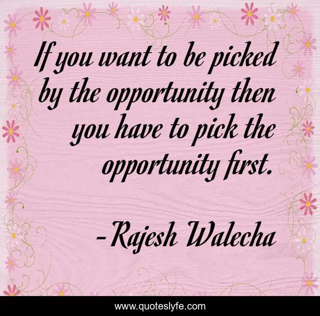 This page presents the quote "If you want to be picked by the opportunity then you have to pick the opportunity first.". Author of this quote is Rajesh Walecha. .