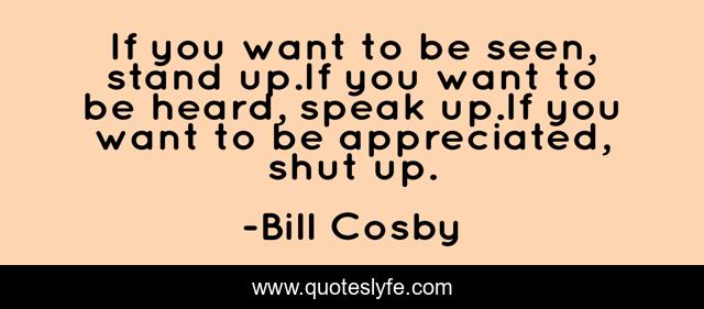This page presents the quote "If you want to be seen, stand up.If you want to be heard, speak up.If you want to be appreciated, shut up.". Author of this quote is Bill Cosby. .