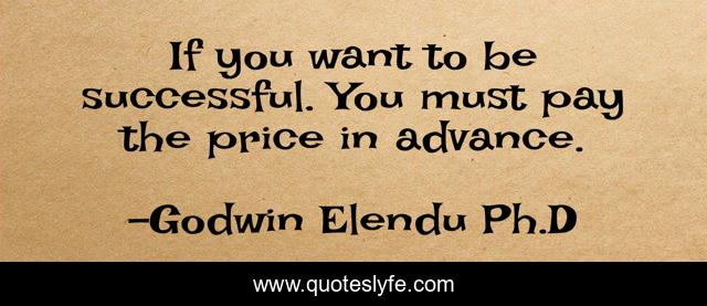 This page presents the quote "If you want to be successful. You must pay the price in advance.". Author of this quote is Godwin Elendu Ph.D. This quote is about educational-philosophy, accomplishment, family-relationships, life-and-living, successful-living, wealth,.