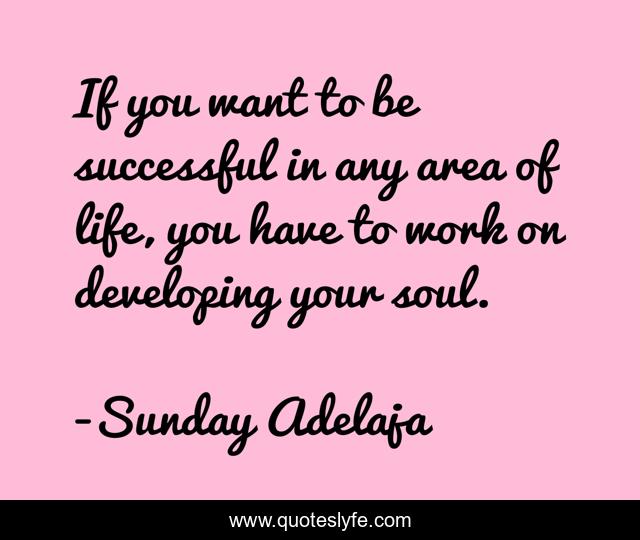 This page presents the quote "If you want to be successful in any area of life, you have to work on developing your soul.". Author of this quote is Sunday Adelaja. This quote is about successful, life, soul,.
