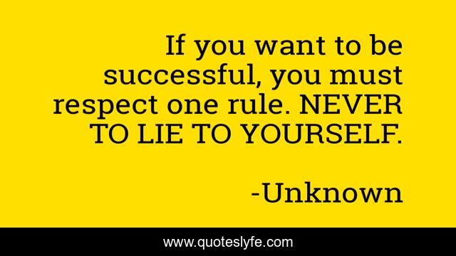 This page presents the quote "If you want to be successful, you must respect one rule. NEVER TO LIE TO YOURSELF.". Author of this quote is Unknown. This quote is about successful, lie, rule, success,.