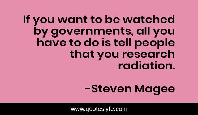 This page presents the quote "If you want to be watched by governments, all you have to do is tell people that you research radiation.". Author of this quote is Steven Magee. This quote is about watched, governments, research, radiation, people,.