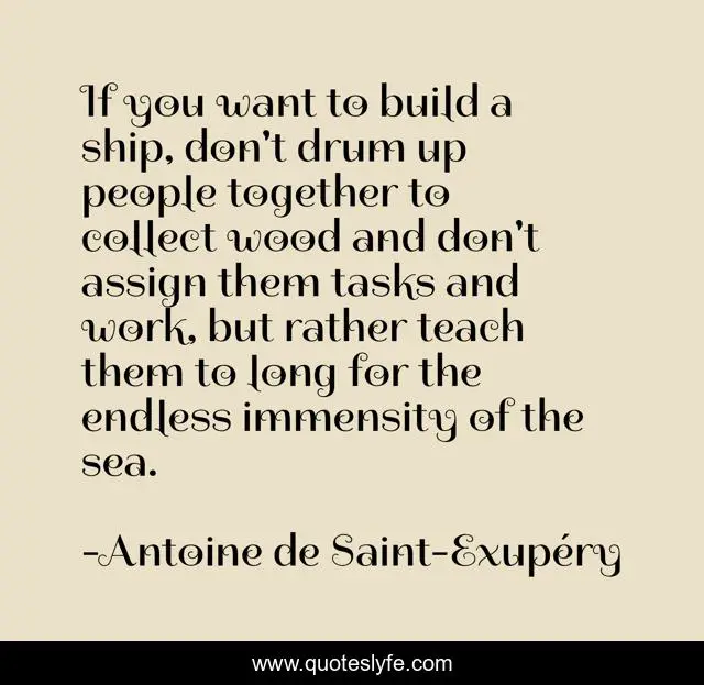 If you want to build a ship, don't drum up people together to collect wood and don't assign them tasks and work, but rather teach them to long for the endless immensity of the sea.