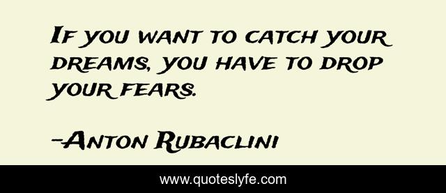 This page presents the quote "If you want to catch your dreams, you have to drop your fears.". Author of this quote is Anton Rubaclini. This quote is about overcoming-adversity, fears, inspirational-attitude, inspirational, overcoming-fear, inspirational-life, enthusiasm, fear, overcoming-obstacles,.