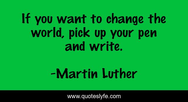 This page presents the quote "If you want to change the world, pick up your pen and write.". Author of this quote is Martin Luther. This quote is about impact, change, writing,.