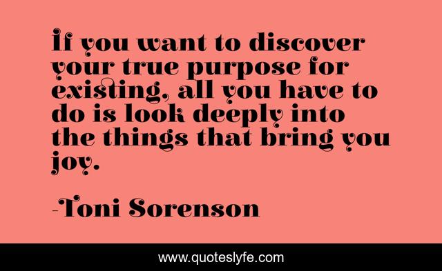 If you want to discover your true purpose for existing, all you have to do is look deeply into the things that bring you joy.