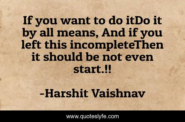 This page presents the quote "If you want to do itDo it by all means, And if you left this incompleteThen it should be not even start.!!". Author of this quote is Harshit Vaishnav. This quote is about positive, confidence, motivational, optimistic,.