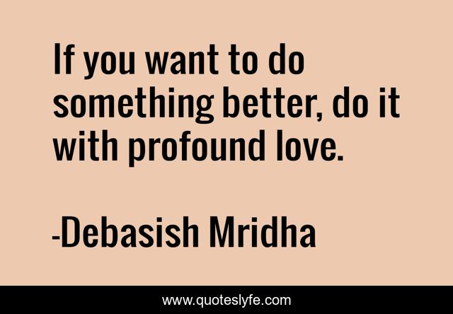 This page presents the quote "If you want to do something better, do it with profound love.". Author of this quote is Debasish Mridha. This quote is about how-to-improve, philosophy, debasish-mridha, profound-love, quotes, debasish-mridha-md, inspirational, do-something-better, enthusiasm,.