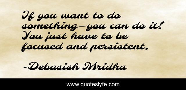 This page presents the quote "If you want to do something—you can do it! You just have to be focused and persistent.". Author of this quote is Debasish Mridha. This quote is about philosophy, debasish-mridha, you-can-do-it, be-persistent, quotes, debasish-mridha-md, inspirational, movitivation, enthusiasm,.