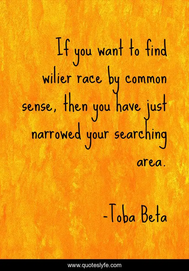 This page presents the quote "If you want to find wilier race by common sense, then you have just narrowed your searching area.". Author of this quote is Toba Beta. This quote is about search, ufo, alien, common, truth, sense, seek, find,.