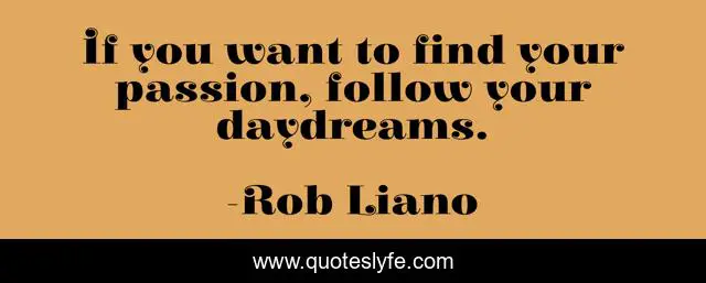 This page presents the quote "If you want to find your passion, follow your daydreams.". Author of this quote is Rob Liano. This quote is about motivation, pursue-passion, success, better-life, daydream, life-lesson, positive, motivational, confidence,.