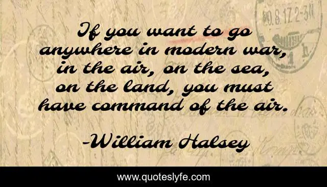 This page presents the quote "If you want to go anywhere in modern war, in the air, on the sea, on the land, you must have command of the air.". Author of this quote is William Halsey. .