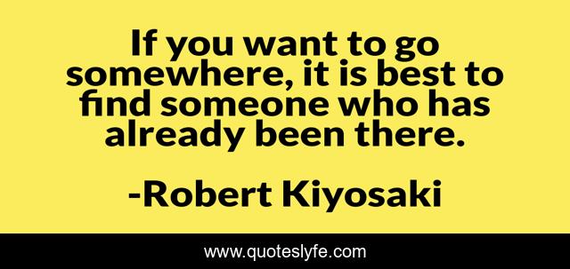 This page presents the quote "If you want to go somewhere, it is best to find someone who has already been there.". Author of this quote is Robert Kiyosaki. .