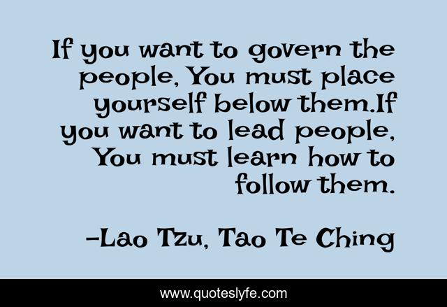 This page presents the quote "If you want to govern the people, You must place yourself below them.If you want to lead people, You must learn how to follow them.". Author of this quote is Lao Tzu, Tao Te Ching. This quote is about lead, people, learn, below, govern, follow,.