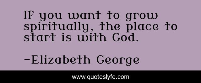 This page presents the quote "If you want to grow spiritually, the place to start is with God.". Author of this quote is Elizabeth George. This quote is about christian, god, elizabeth-george, christianity, spirituality, christian-living,.