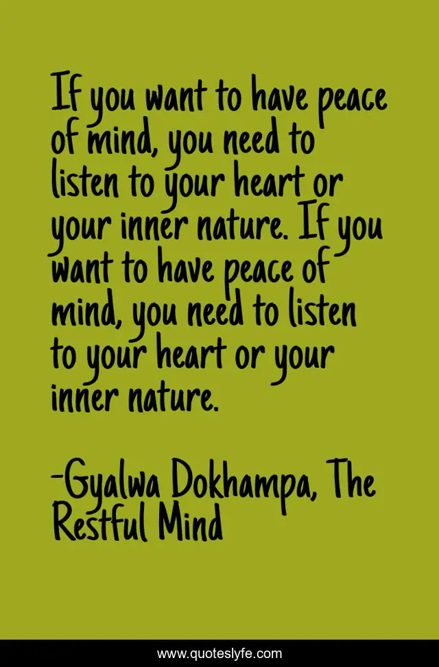 This page presents the quote "If you want to have peace of mind, you need to listen to your heart or your inner nature. If you want to have peace of mind, you need to listen to your heart or your inner nature.". Author of this quote is Gyalwa Dokhampa, The Restful Mind. This quote is about inner-nature, peace-of-mind,.