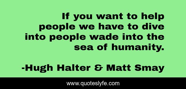 This page presents the quote "If you want to help people we have to dive into people wade into the sea of humanity.". Author of this quote is Hugh Halter & Matt Smay. This quote is about missional, incarnational, incarnational-communities, jesus,.