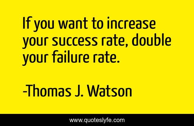 This page presents the quote "If you want to increase your success rate, double your failure rate.". Author of this quote is Thomas J. Watson. .