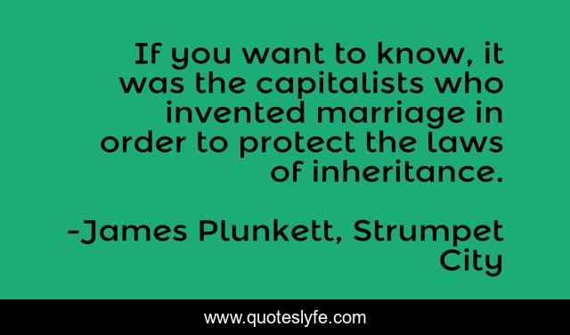 This page presents the quote "If you want to know, it was the capitalists who invented marriage in order to protect the laws of inheritance.". Author of this quote is James Plunkett, Strumpet City. .
