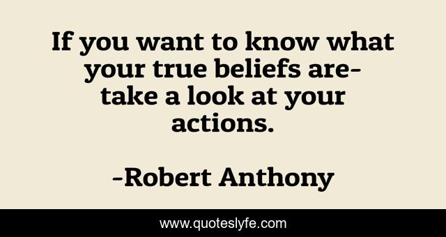 This page presents the quote "If you want to know what your true beliefs are- take a look at your actions.". Author of this quote is Robert Anthony. This quote is about life, beliefs,.