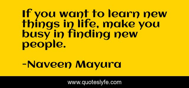 This page presents the quote "If you want to learn new things in life, make you busy in finding new people.". Author of this quote is Naveen Mayura. This quote is about positive, confidence, motivational, optimistic,.